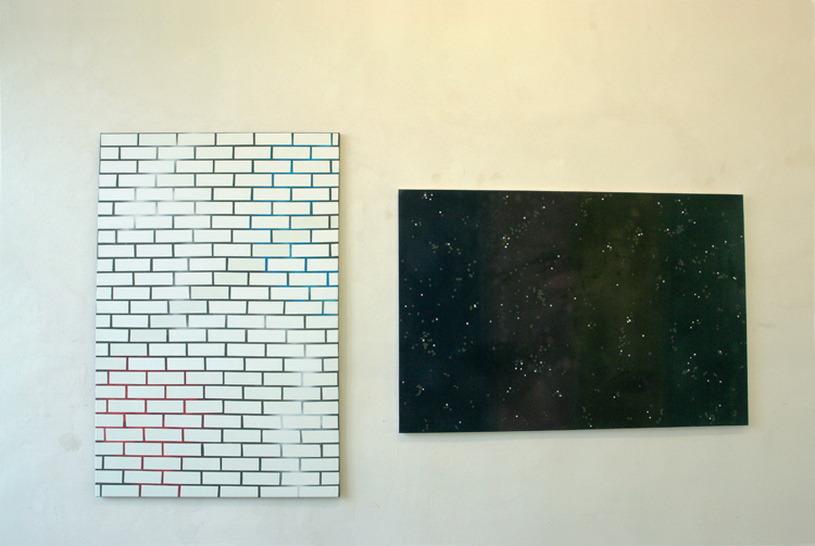 Das Collagenhafte wird im ursprünglichen Sinne des Klebebildes über die unterschiedlichen Materialien erprobt und bildet eine gute Ergänzung zu seiner Malerei, auch wenn oder gerade weil hier das Flirrende, Irritierende und Unruhige seiner Bilder besänftigender wirkt.