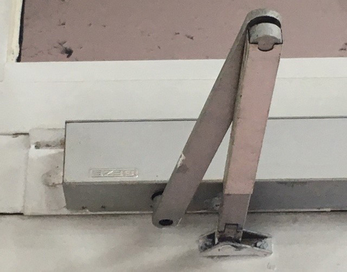 Der Fachmann erzählt von verschiedenen Stellschrauben am Türschließer, mit denen der Zug, die Geschwindigkeit und Stärke des Ins-Schloss- Fallens bestimmt werden kann.