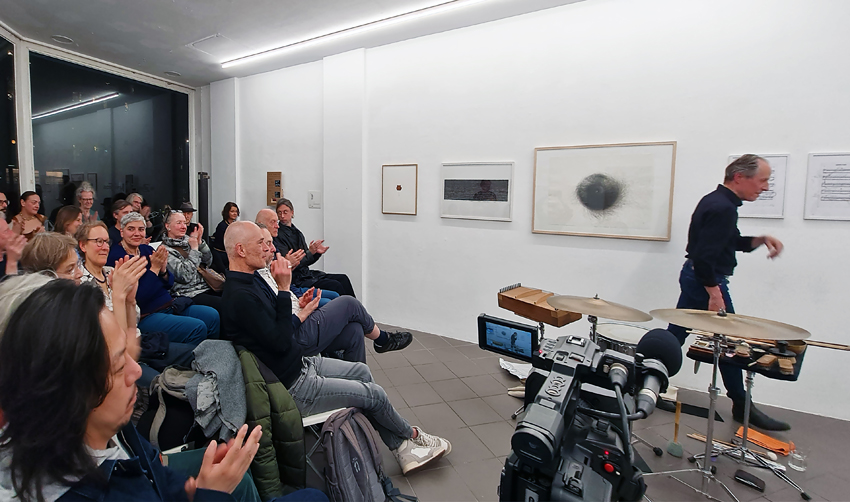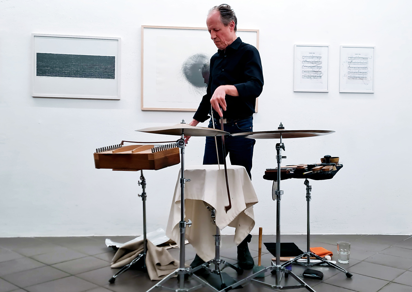 Musik für Perkussion und selbstentworfenes Saiten-Instrument.