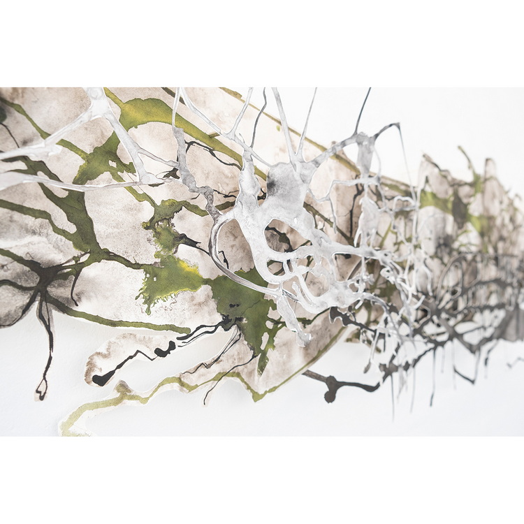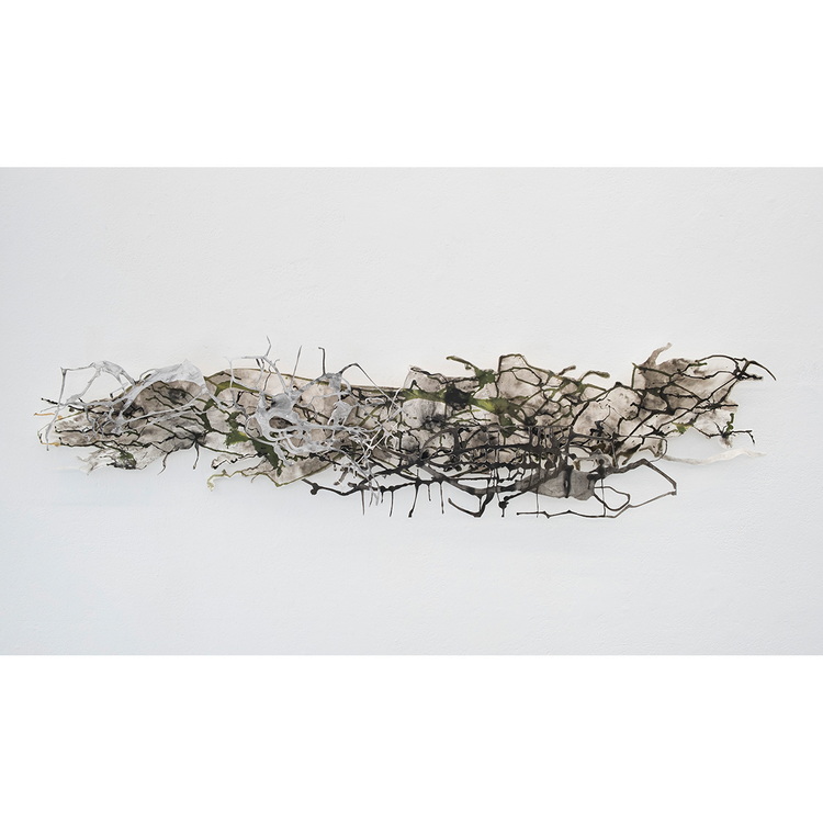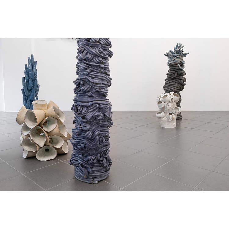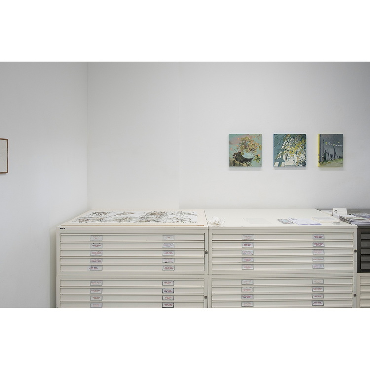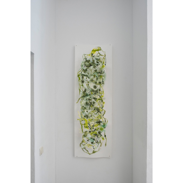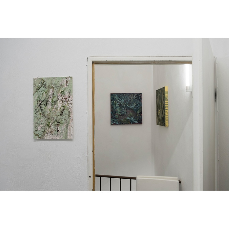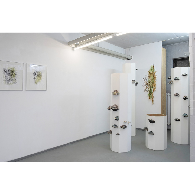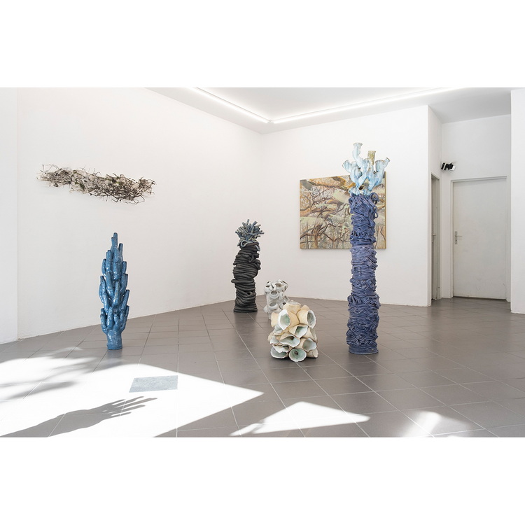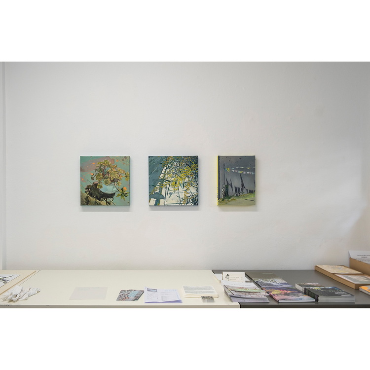 Malerei, Papierschnitte und Keramiken vereint eine Auseinandersetzung mit Raum und Plastizität. Sie verbindet die vollplastischen Keramikskulpturen botanischer Phantasien von Nils Blau mit den feinen Papierschnitte von Sabine Hilscher, die mit Licht und Schatten und der Bewegung im Raum spielen. Sabine Beyerles Malerei öffnet auf der Leinwand tiefe Räume in die Welt der Pflanzen zwischen Abstraktion, Gräsern und Blattwerk.