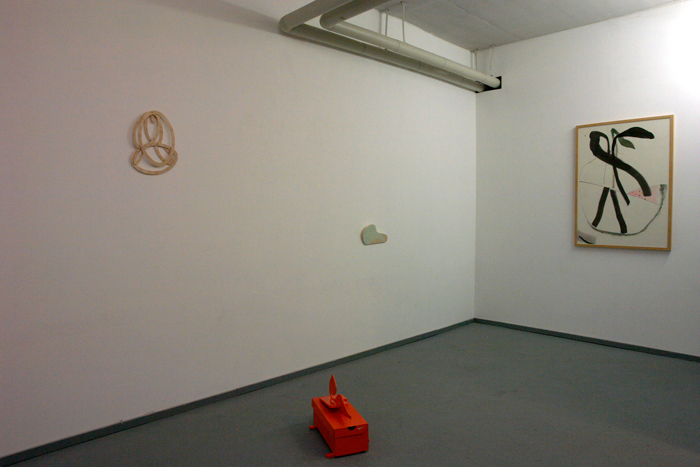 Rita Hensen wählt dagegen Holz, um damit Raum einzunehmen. Ihre Anordnungen sind jedoch gezielter, gezirkelter, linear statt amorph und scheinbar logischer. Aber ist das so? Es sind geometrische Ringe, übereinanderliegend, einander schneidend, verschattend, beschattend. Eine entspannte Ordnung scheint hier zu herrschen, als hätte jemand Gummiringe aus der Schublade an einen Haken gehängt.