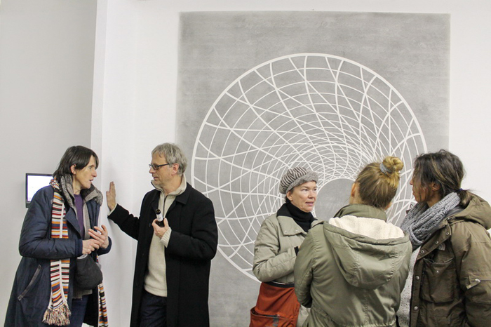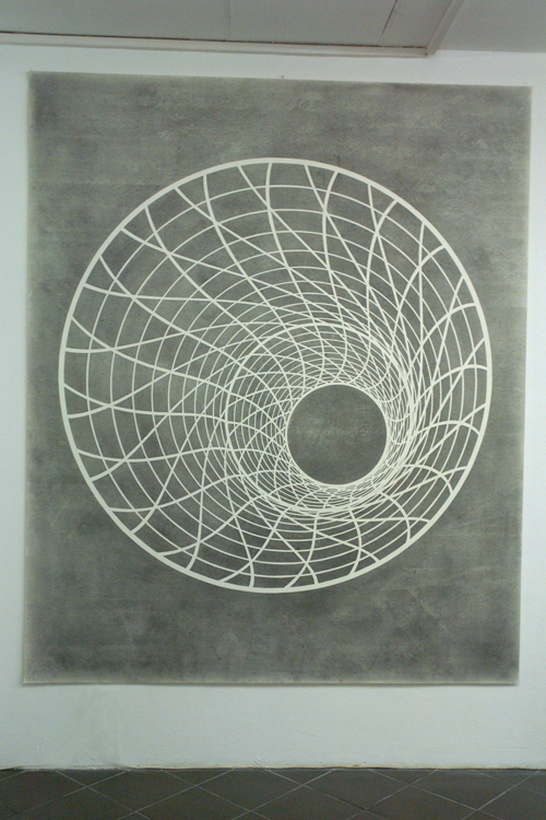 Hansjörg Schneider’s Zeichnung ist ein feines Relief. In die abgerissenen Partien der Papieroberfläche wurde Graphitpulver in die offene Materialstruktur gerieben. Die unbehandelten Papierflächen formen eine konstruktive Figur vor bleigrauem Grund. Maelström XL1 ist die Transfiguration“ eines konstruktivistischen Bauwerks. Das Motiv basiert auf einer untersichtigen Perspektive des Moskauer Radioturmes, den Wladimir Schuchow 1919 für die Komintern- Radiostation plante und ausführte. In Zusammenarbeit mit Daniel Lordick wurde der Turm dreidimensional nachkonstruiert und einer virtuellen Drehung unterzogen. Das gradlinige Gefüge wurde so in einen Strudel transformiert. Es entsteht die Illusion eines offenen Trichters. Doch kann diese Sicht auch umschlagen, so dass man auf die Außenseite des Körpers zu blicken meint. ...weniger Text