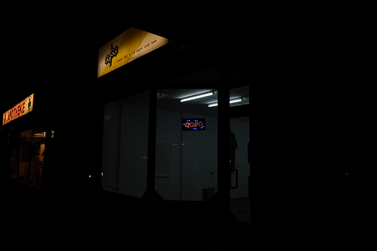 Dennoch gehen die meisten vorbei und meinen keine Kunst zu brauchen. open oqbo open ist ein Hinweis an die Straße, dass auch oqbo open ist wie ein Späti. Jeder könnte einfach durch die offene Tür hereinkommen und man könnte vielleicht ganz neue Aspekte der Kunst und des Lebens gemeinsam entdecken.
