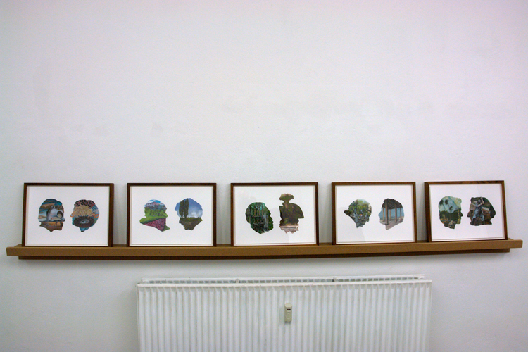 Ummantelt wird diese "theoretische" Mitte von den nach außen sich auffächernden Dokumentations-Photos der besuchten realen "Gärten". Ihnen gegenüber stehen, unkommentiert, Porträt-Malereien.